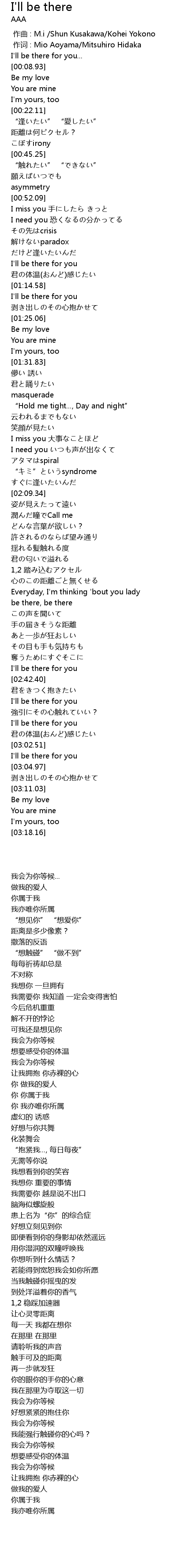 | [00:01.00] | 作词 : Mio Aoyama/Mitsuhiro Hidaka |