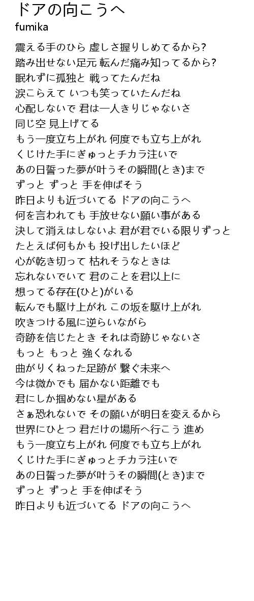 | 歌曲 | ドアの向こうへ |