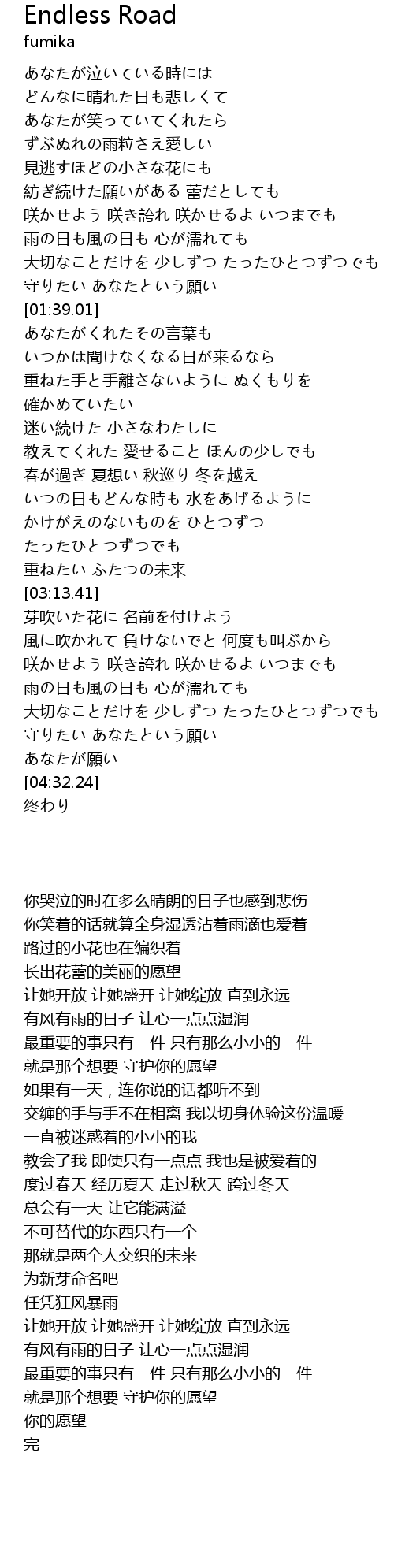 | [02:43.43] | いつの日もどんな時も 水をあげるように |