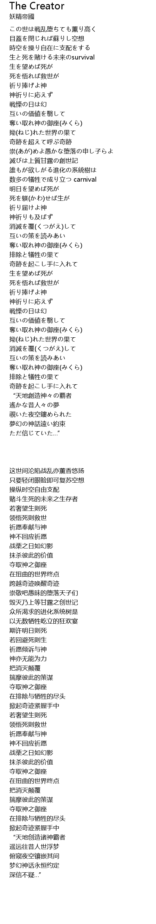 | [03:26.150] | “天地创造诸神霸者 |