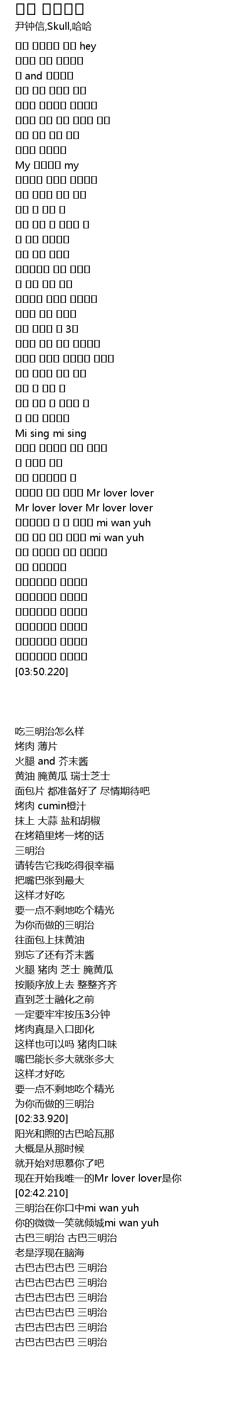 | [03:25.430] | 古巴古巴古巴 三明治 |