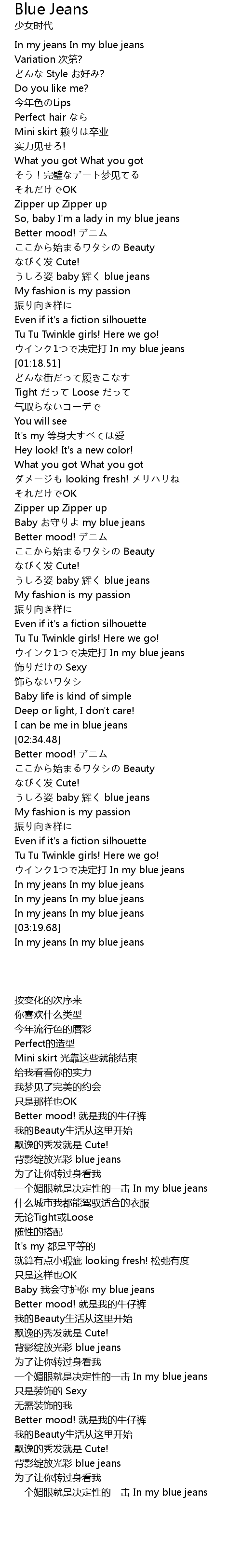 | [00:49.61] | So, baby I'm a lady in my blue jeans |