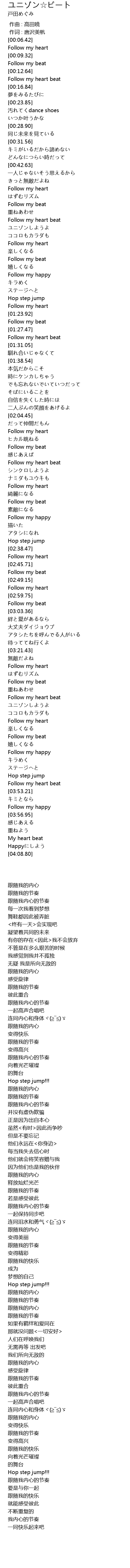 | [00:15.33] | Follow my heart beat |