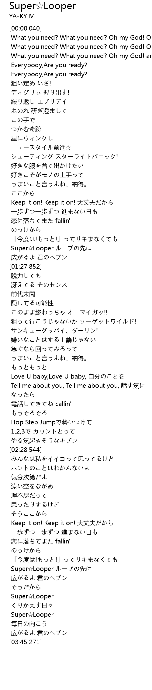 | [00:58.156] | Keep it on! Keep it on! 大丈夫だから |