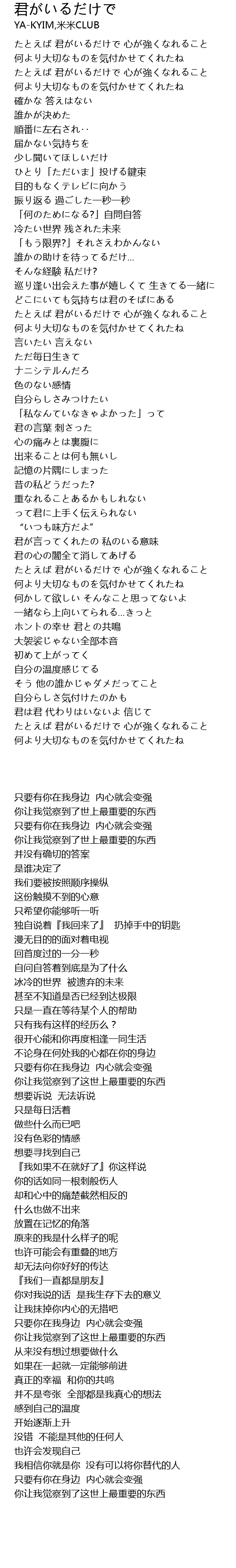 | [00:18.18] | たとえば 君がいるだけで 心が強くなれること |