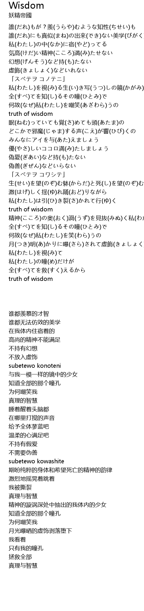 | 歌曲 | Wisdom |