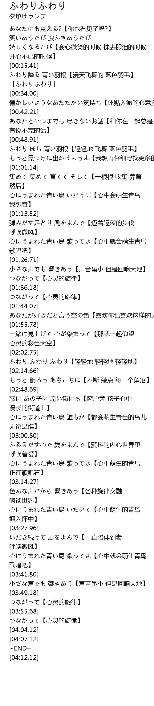 | [02:03.76] | ふわり ふわり ふわり【轻轻地 轻轻地 轻轻地】 |
