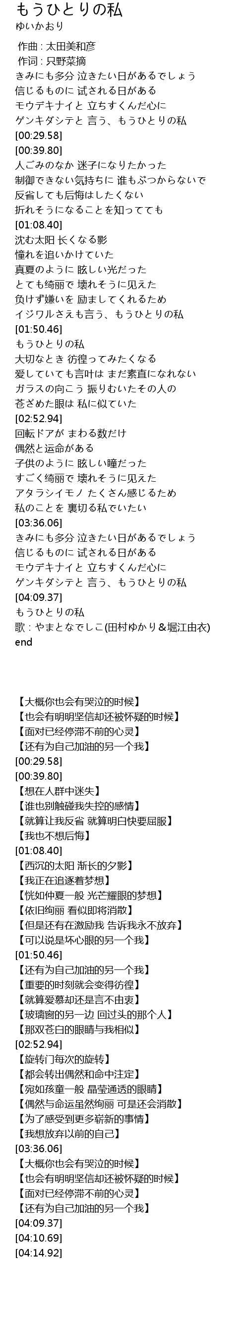 | [01:45.32] | イジワルさえも言う、もうひとりの私 |