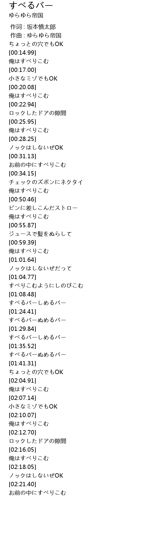 | [01:36.99] | すべるバーぬめるバー |