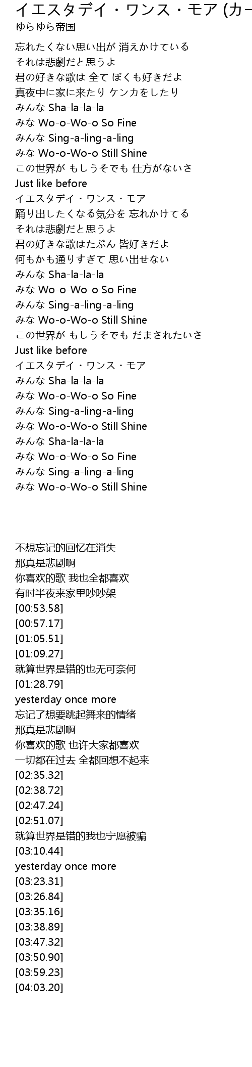 イエスタデイ・ワンス・モア (カーペンターズ) 歌词