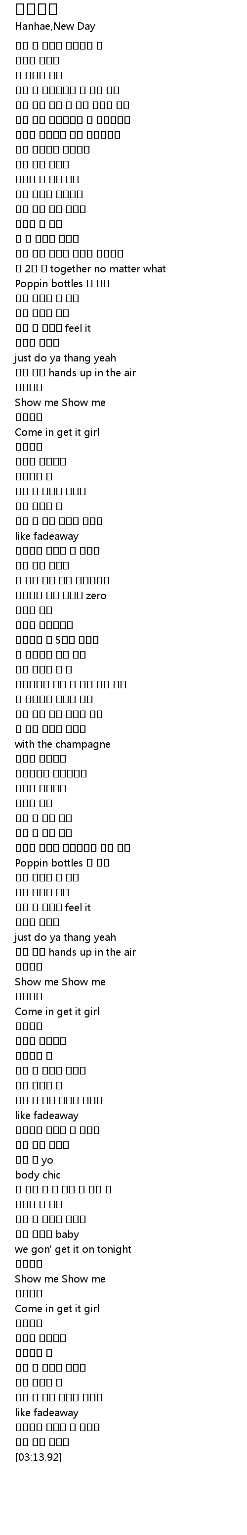 | [01:52.99] | Poppin bottles 된 뒤로 |