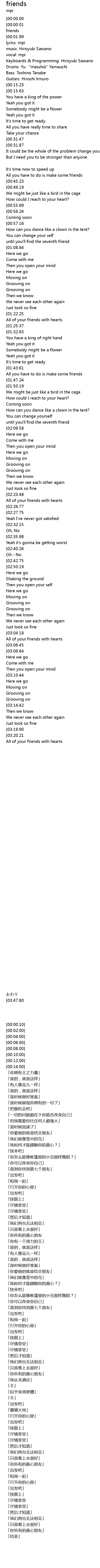 | [03:04.19] | 「你所有的真心朋友」 |