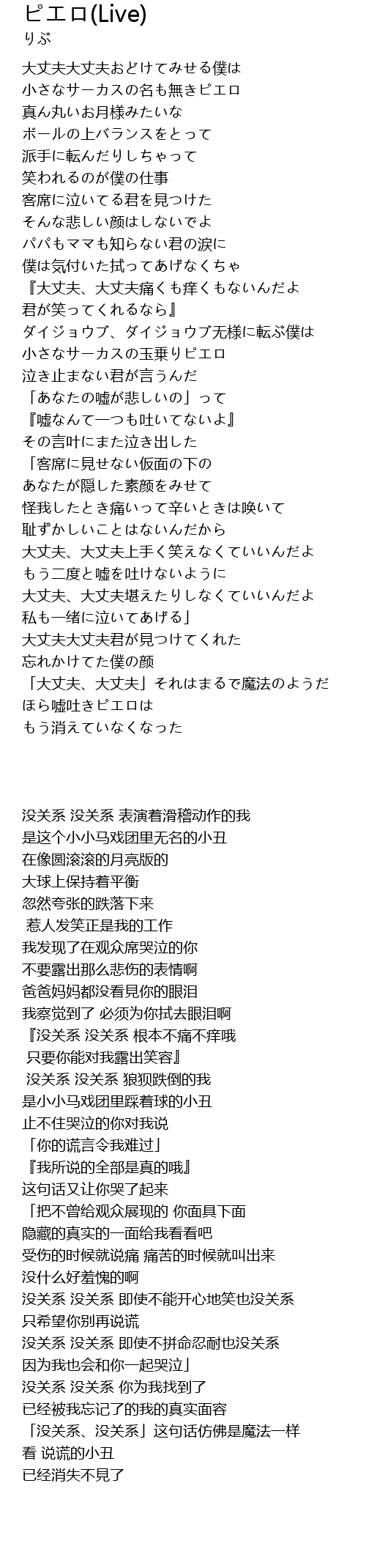 | 歌曲 | ピエロ(Live) |