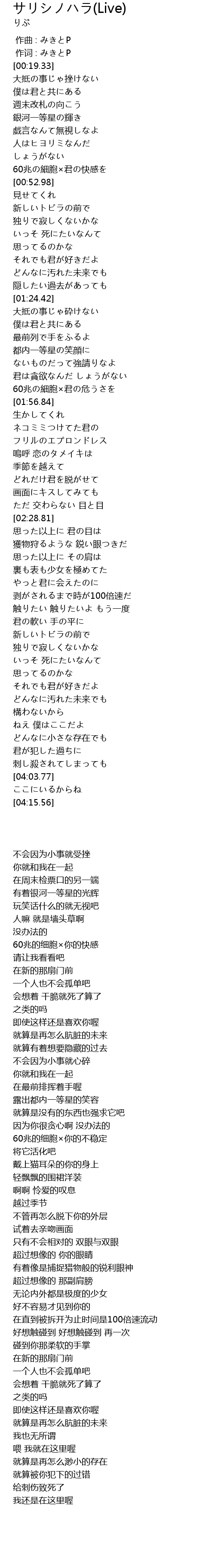 | [00:01.00] | 作词 : みきとP |