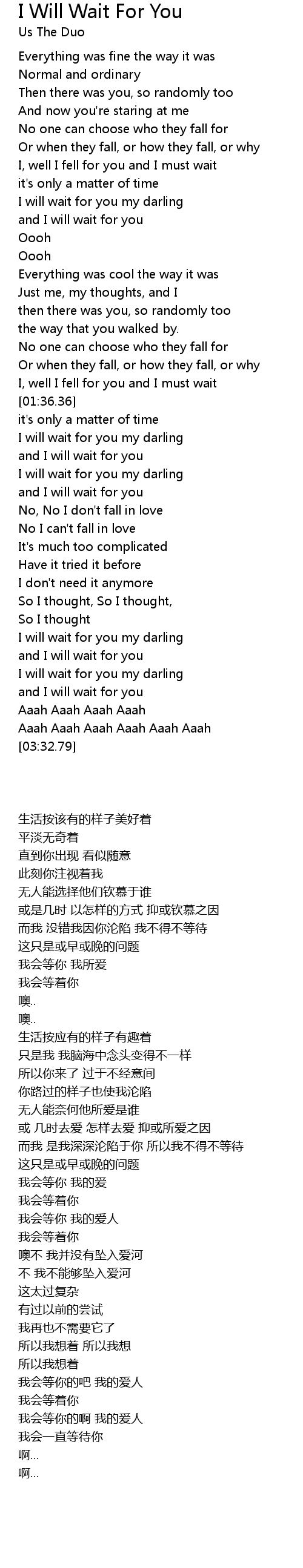 and I will wait for you |