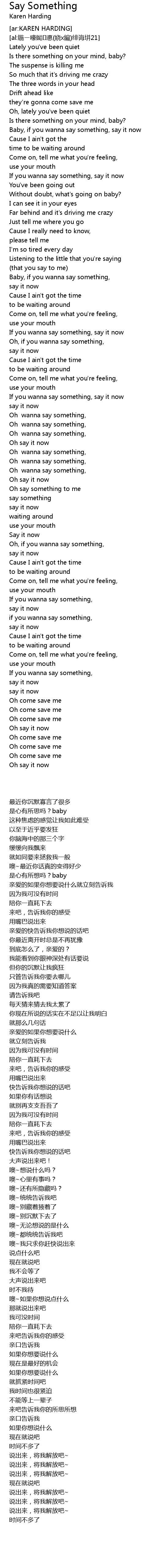 | 歌曲 | Say Something |