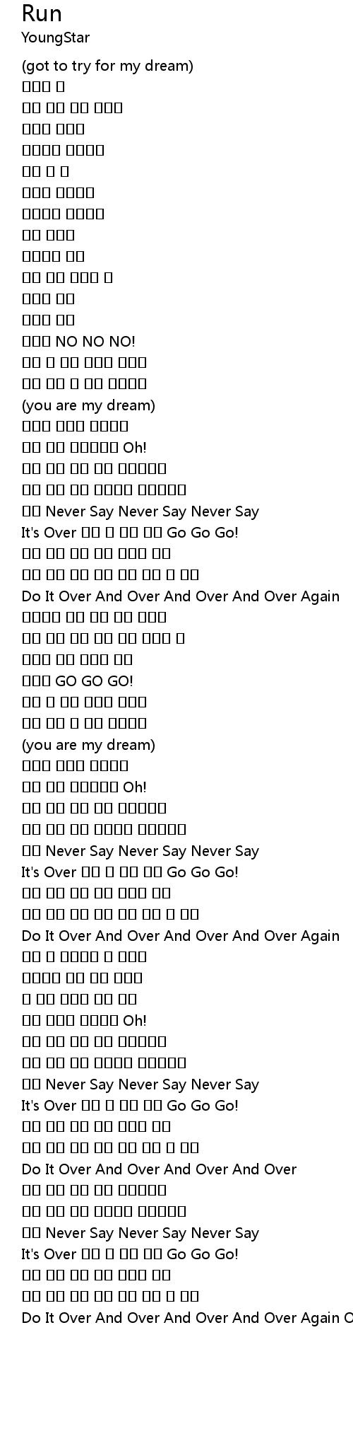 | [03:14.830] | It's Over 포기 할 수는 없어 Go Go Go! |