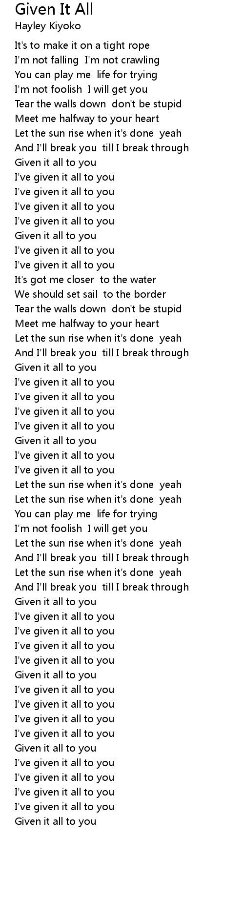 Given it all to you |