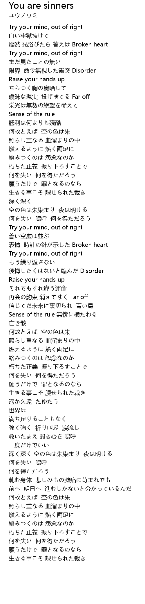 | 歌曲 | You are sinners |
