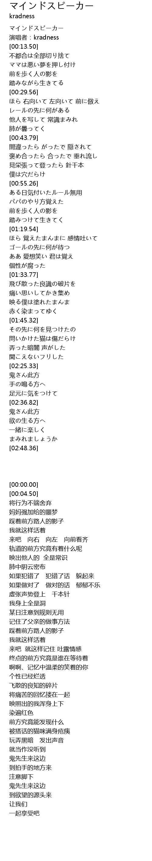 | [00:04.50] | yǎn chàng zhě: kradness |