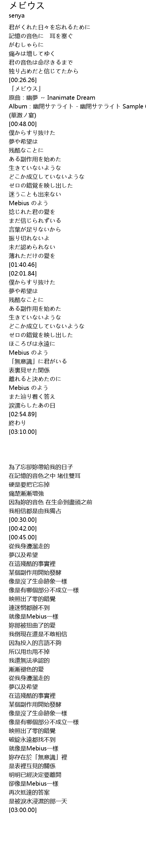 | [00:42.00] | 原曲:幽夢 ~ Inanimate Dream |
