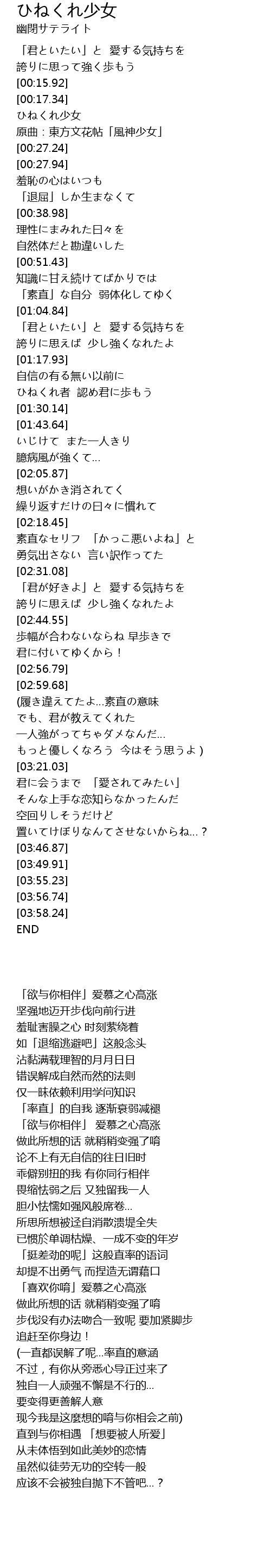 | [00:18.09] | ひねくれ少女 |