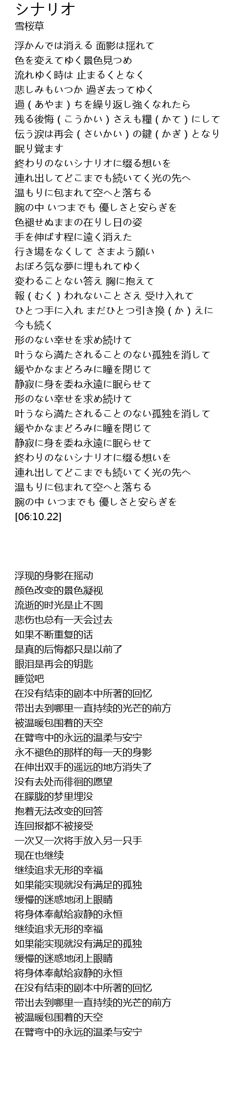 | [05:32.10] | 終わりのないシナリオに缀る想いを |