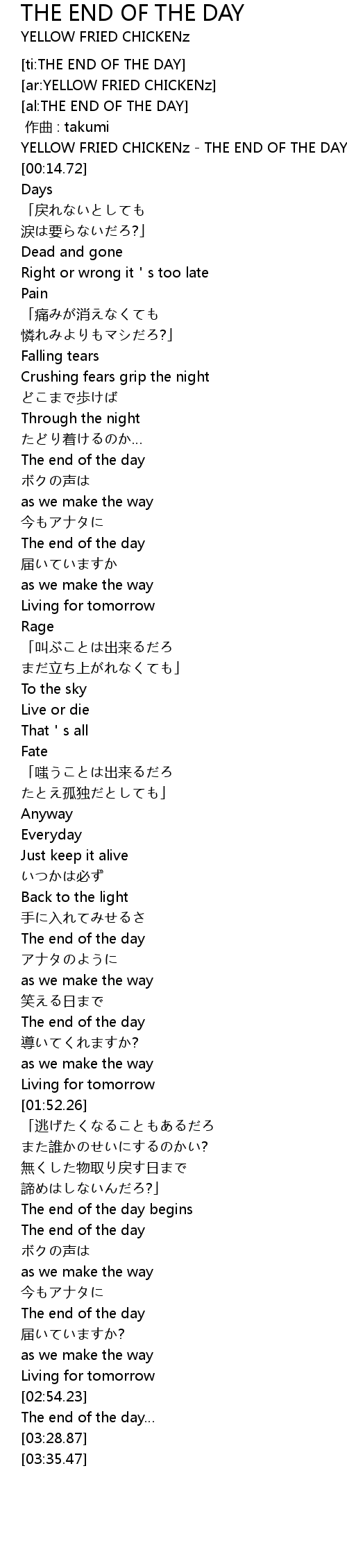 | [00:00.00] | YELLOW FRIED CHICKENz THE END OF THE DAY |
