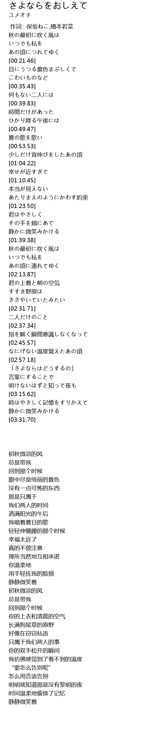 | [02:58.03] | 「さよならはどうするの」 |