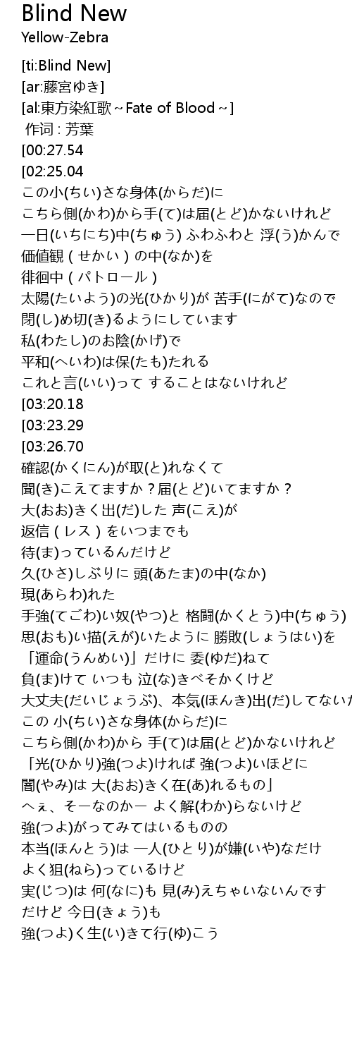 | [02:38.71] | 「光(ひかり)強(つよ)ければ 強(つよ)いほどに |