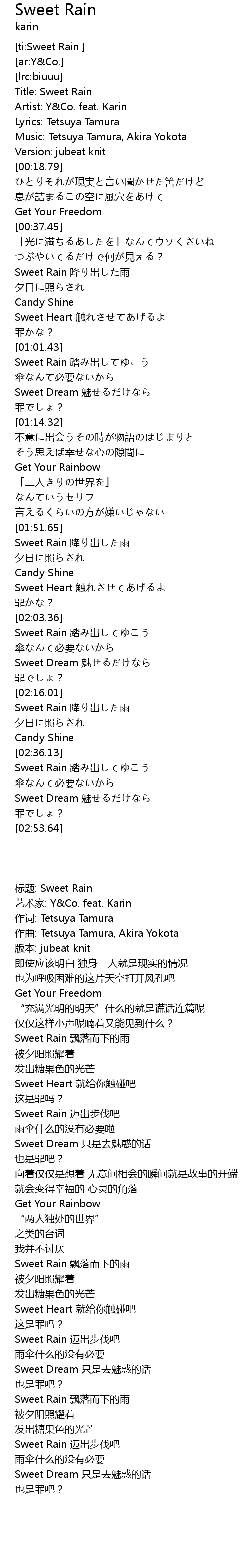 | [01:51.81] | Sweet Rain 飘落而下的雨 |