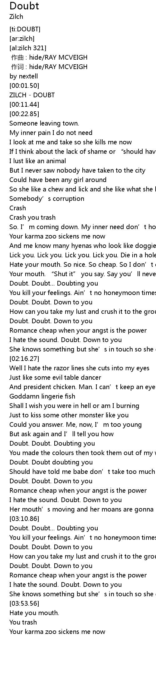 | [00:07.79] | ZILCH - DOUBT |