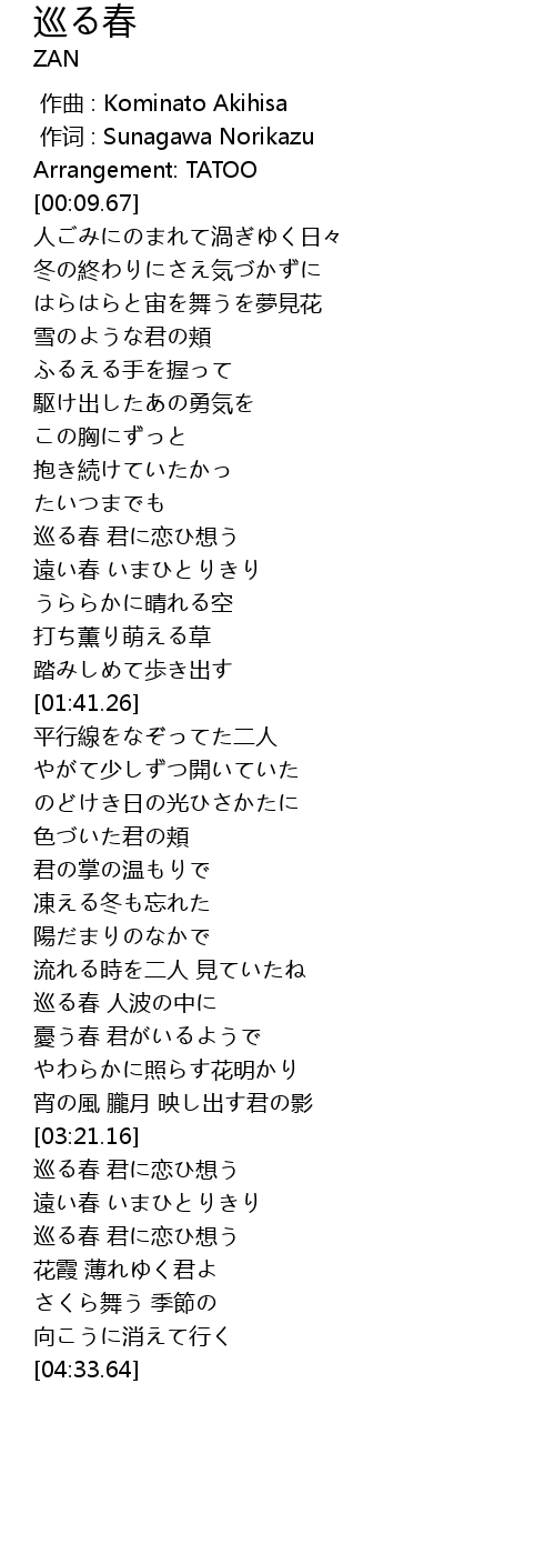 | [04:01.61] | 巡る春 君に恋ひ想う |