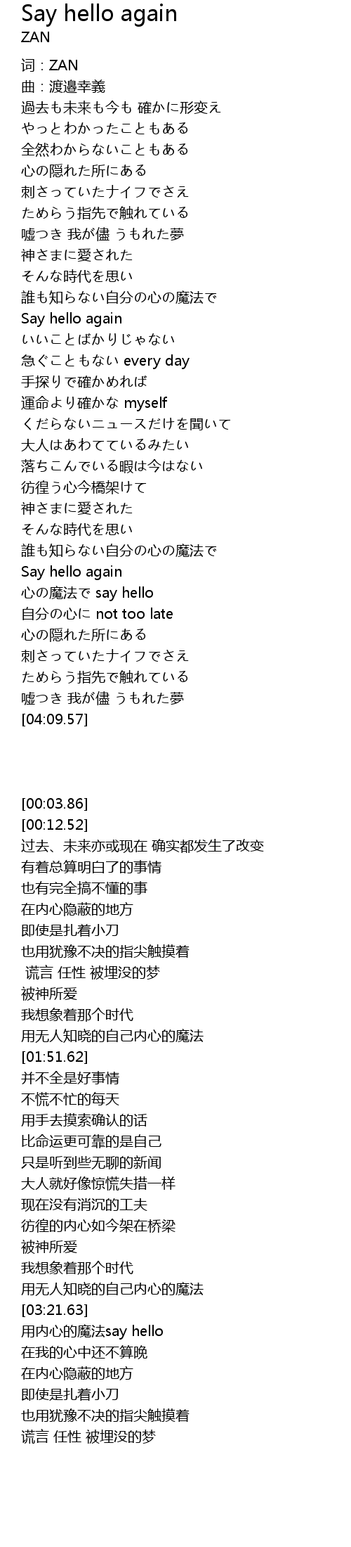 | [03:21.63] | Say hello again |