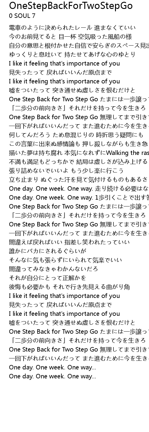 | 歌曲 | OneStepBackForTwoStepGo |
