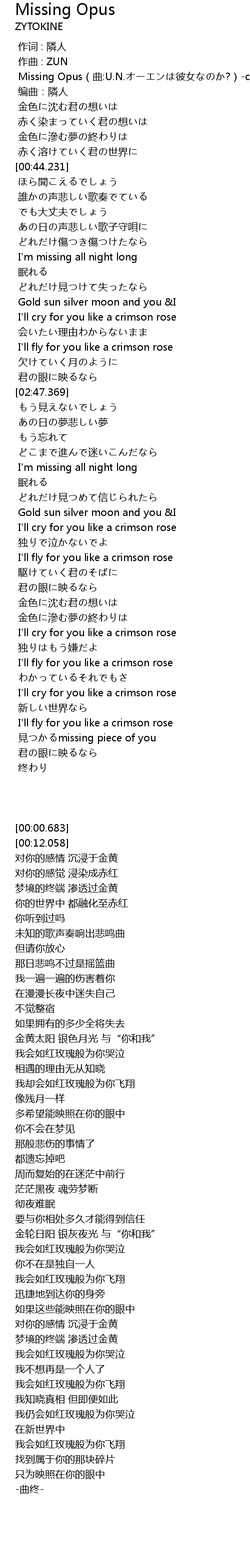 | [00:00.683] | Missing Opus qū: U. N. bǐ nǚ? cold kiss |