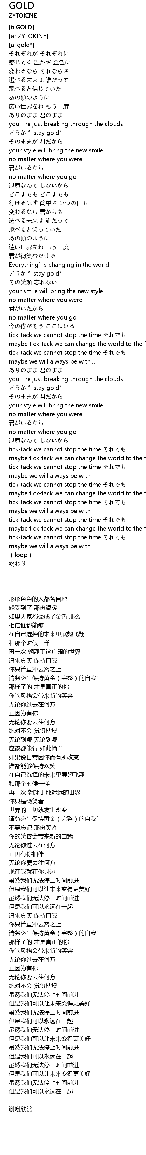 | [02:17.56] | 请务必”保持黄金(完整)的自我” |
