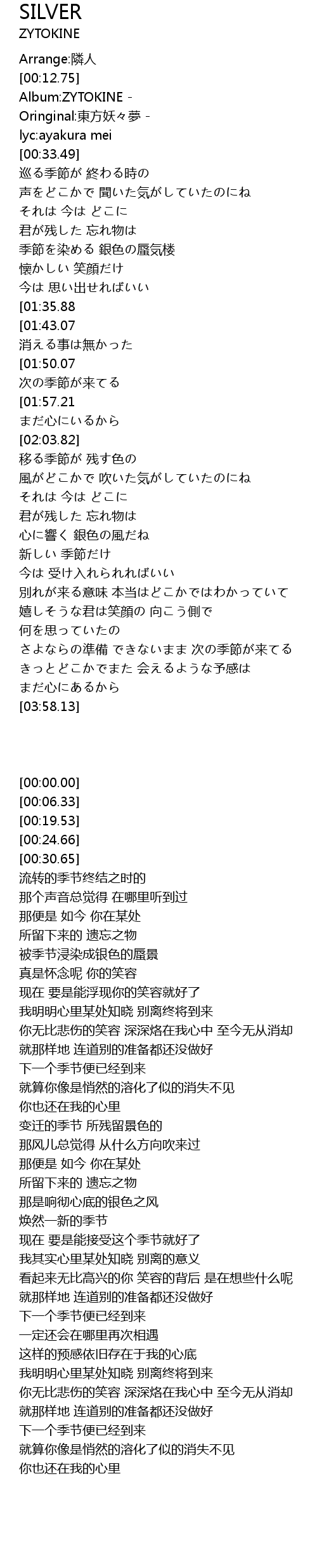| [00:30.65] | lyc: ayakura mei |
