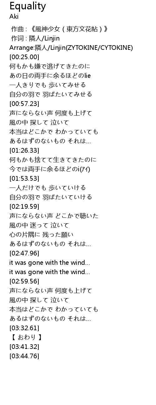 | [00:01.00] | 作词 : 隣人/Linjin |