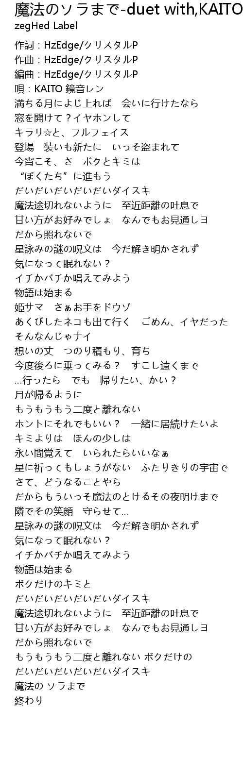 | 歌曲 | 魔法のソラまで-duet with,KAITO and, Delay Rama- |
