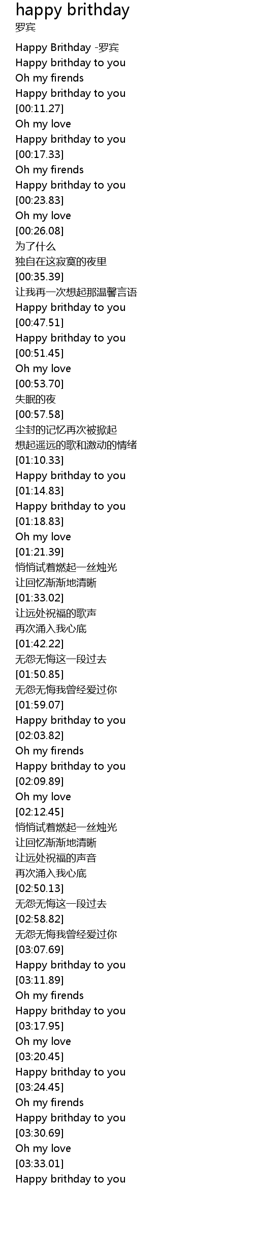 | [00:00.33] | Happy Brithday luó bīn |