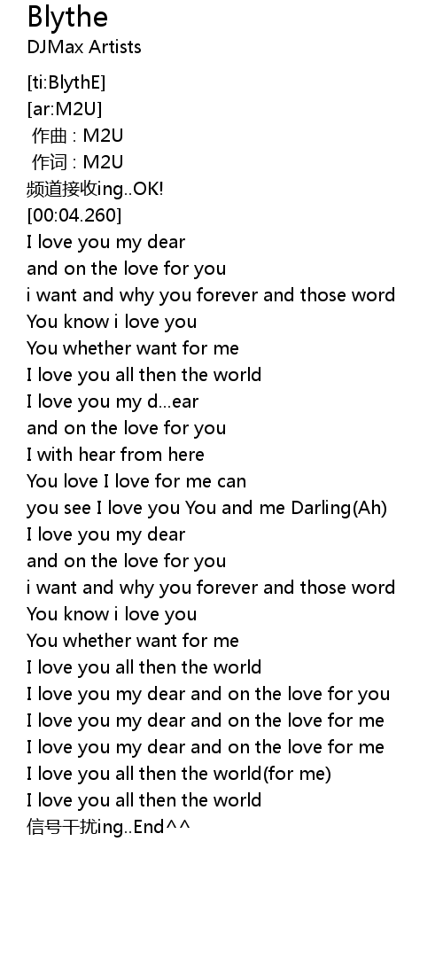 | [01:46.560] | I love you my dear and on the love for me |