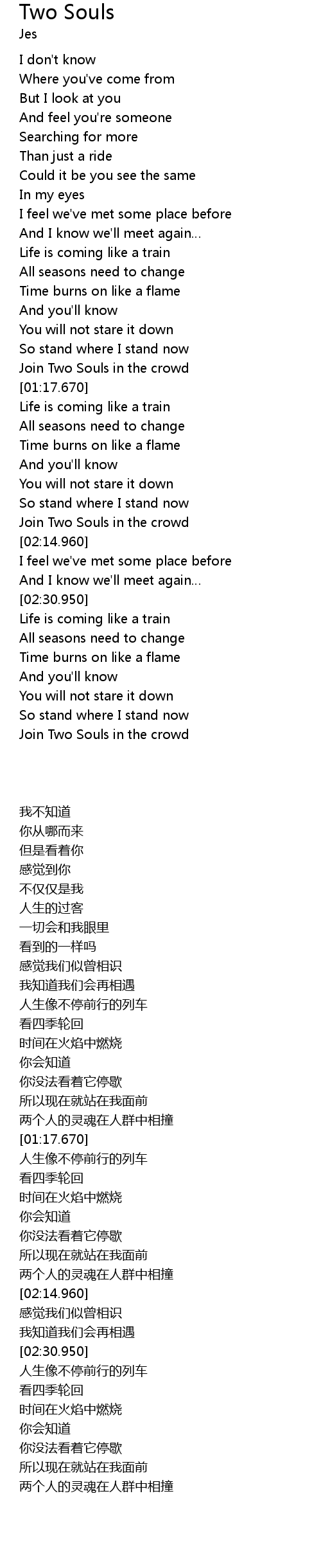 | [01:09.570] | 两个人的灵魂在人群中相撞 |