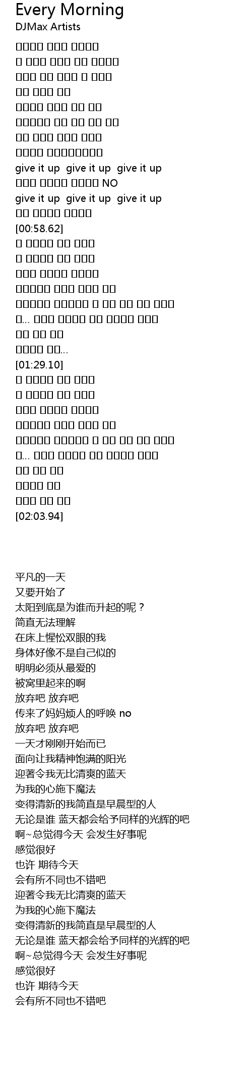 | [01:38.09] | 상쾌해지는 나는야 아침형 인간 |