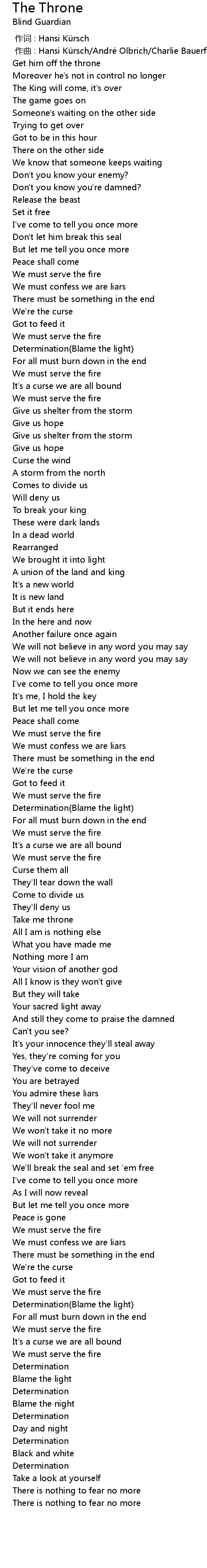 | [00:00.000] | 作词 : Hansi Kürsch |