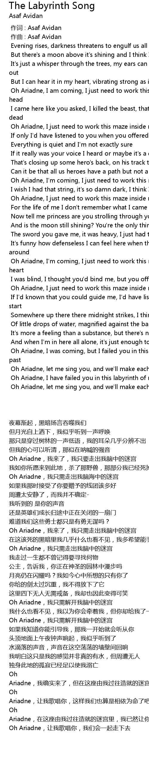 | [02:23.102] | Oh Ariadne,我只需解开我脑中的迷宫 |