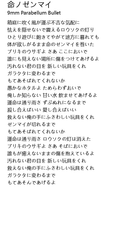 | 歌手 | 9mm Parabellum Bullet |