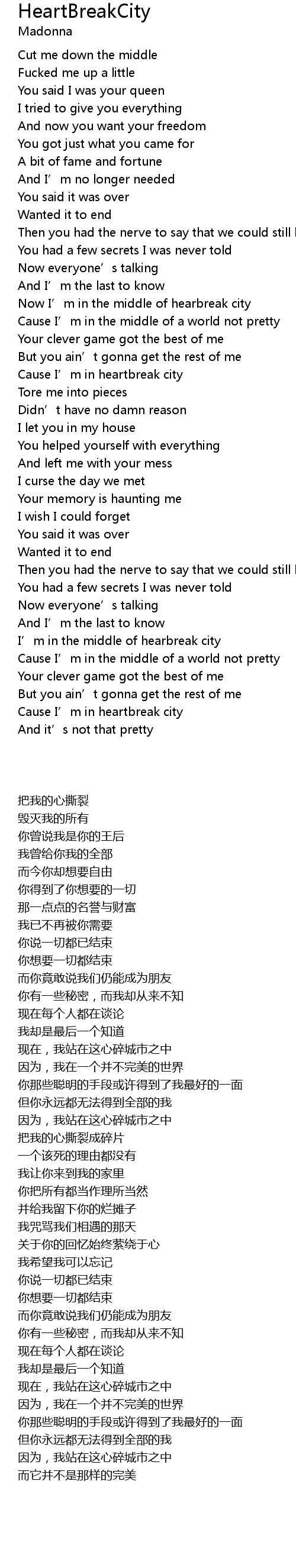 | [01:32.460] | Cause I’m in heartbreak city |