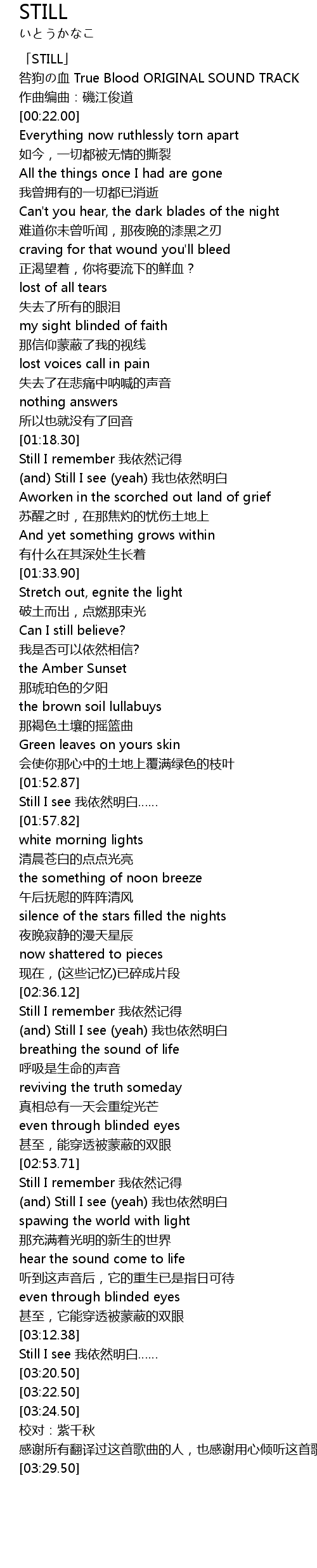| [03:16.17] | Still I see 我依然明白…… |