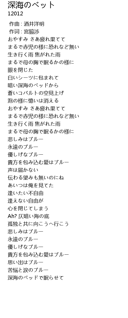 | [02:49.79] | Ah? 仄暗い海の底 |